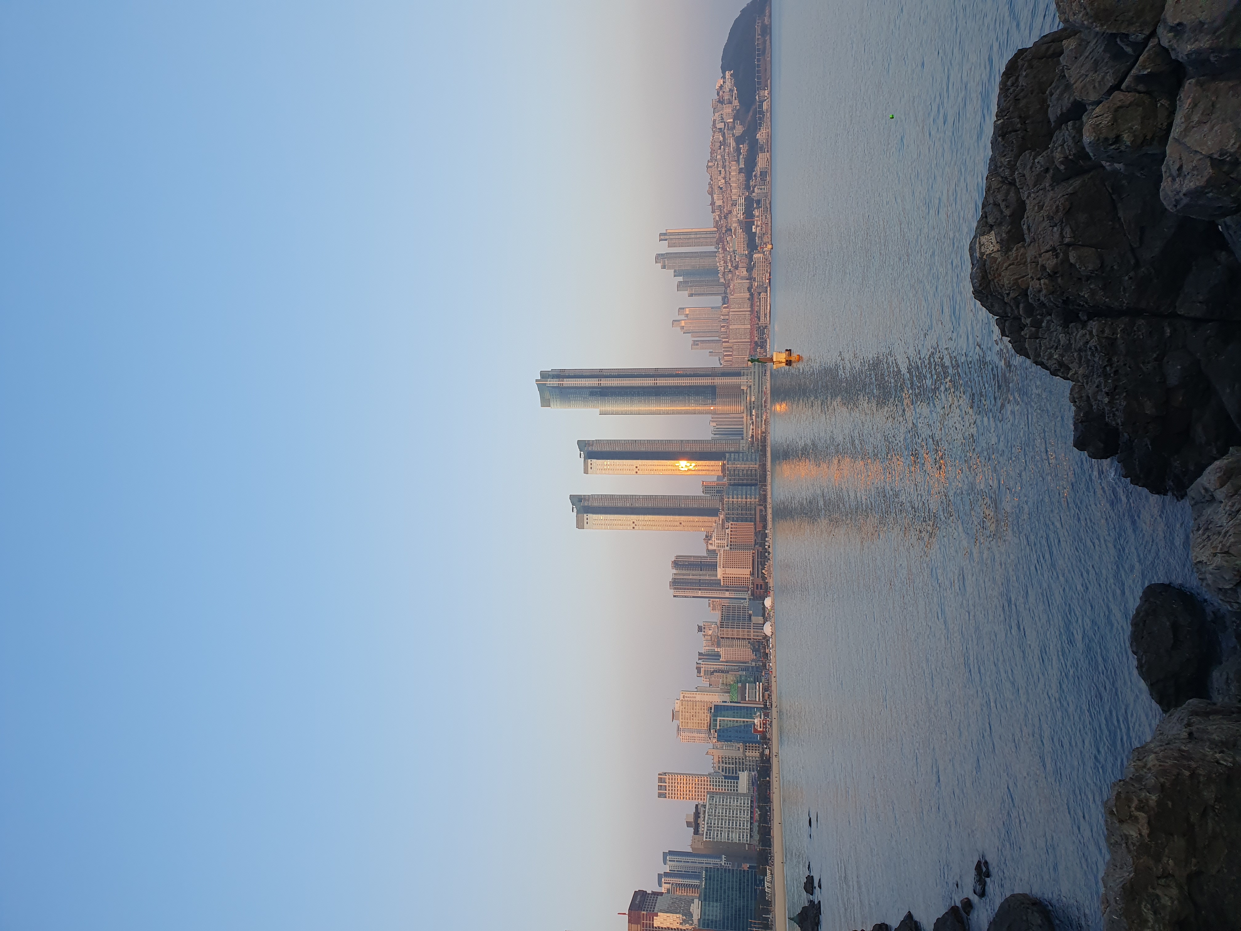 해안가에서 바라보는 해운대해수욕장 전망이 좋네요.