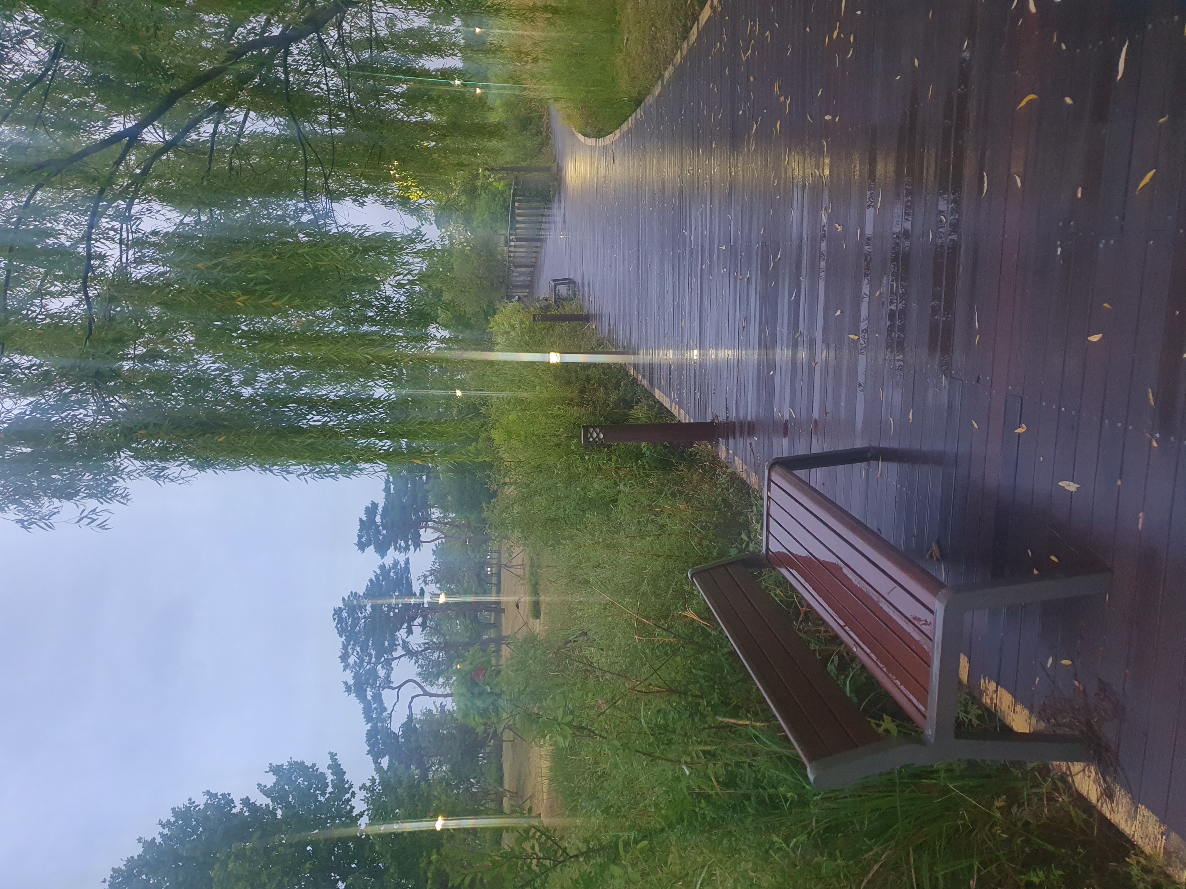 버드나무에 맺힌 빗방울을 얼굴에 맞으면서 뜁니다.