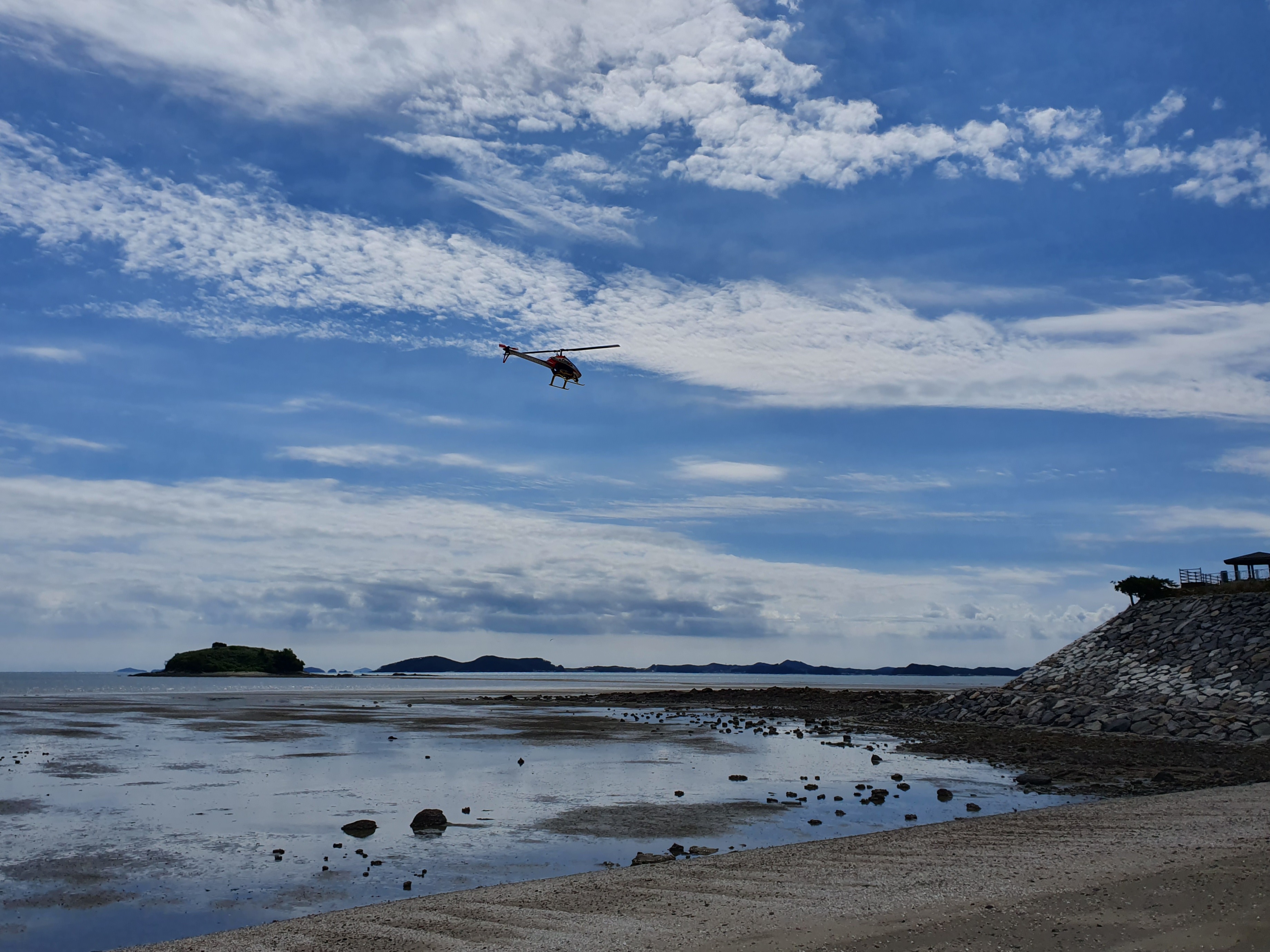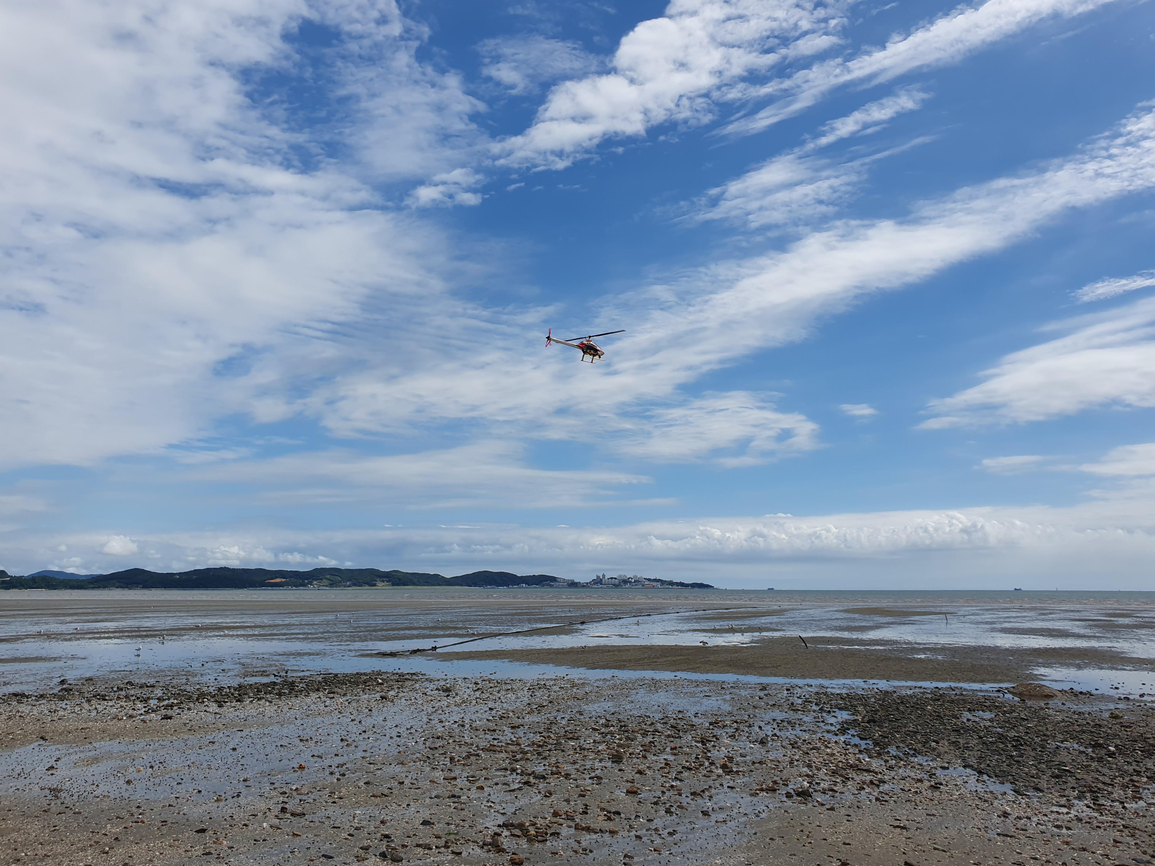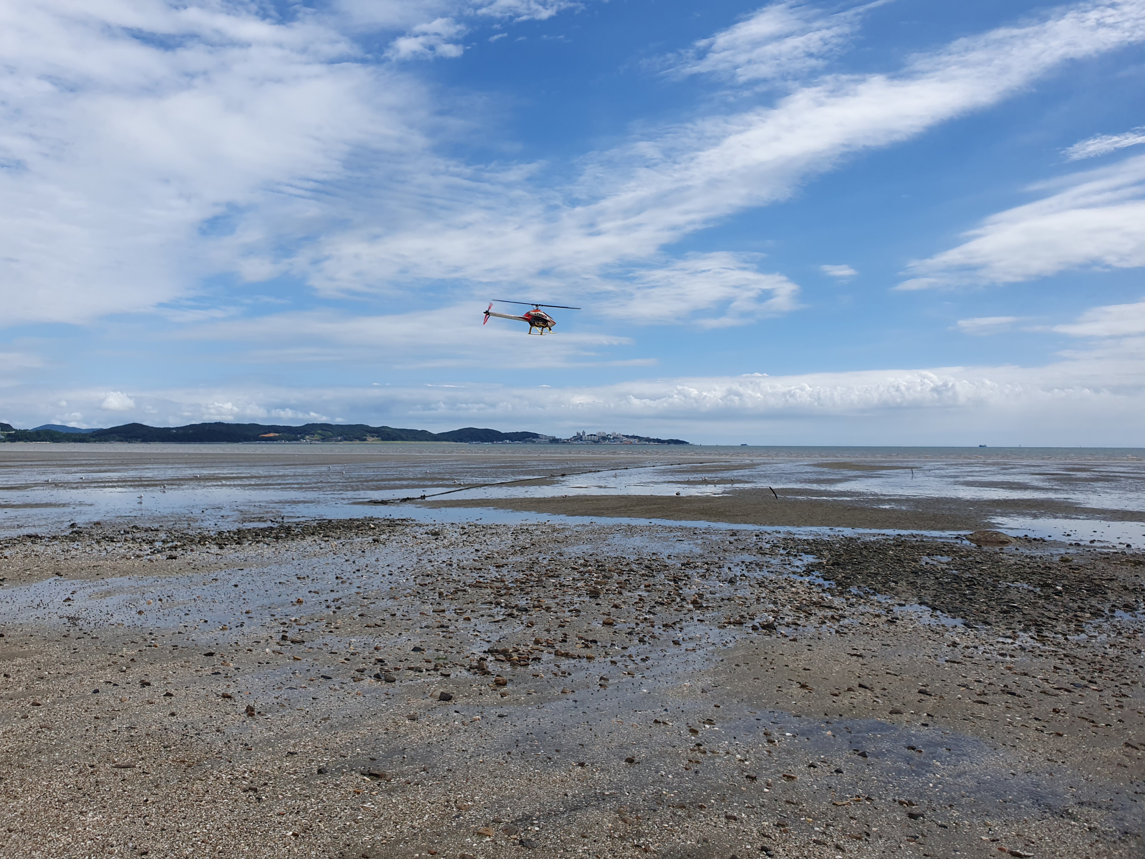 대천해수욕장을 마주보는 반대편 해안가에서 RC 헬기 비행