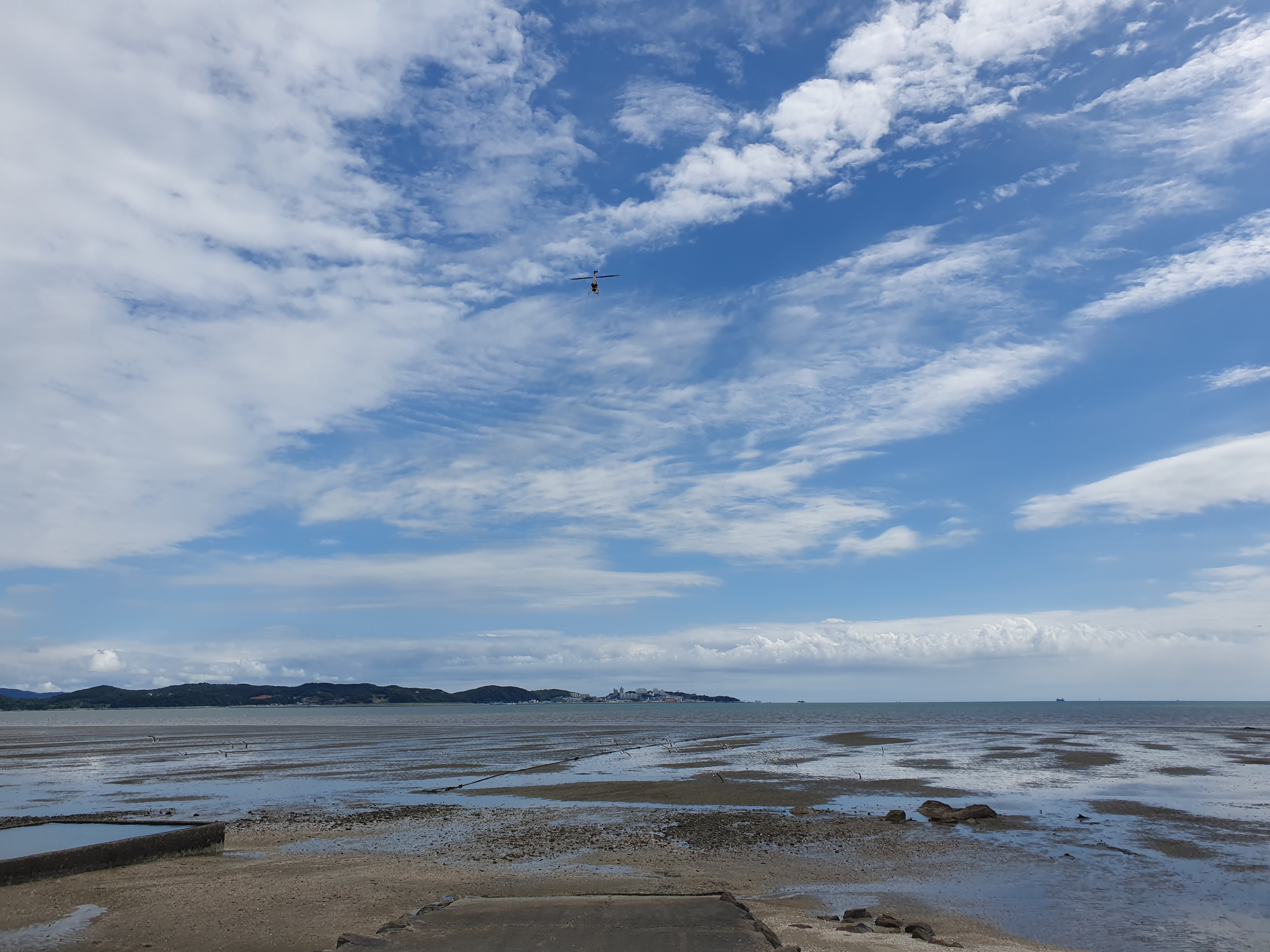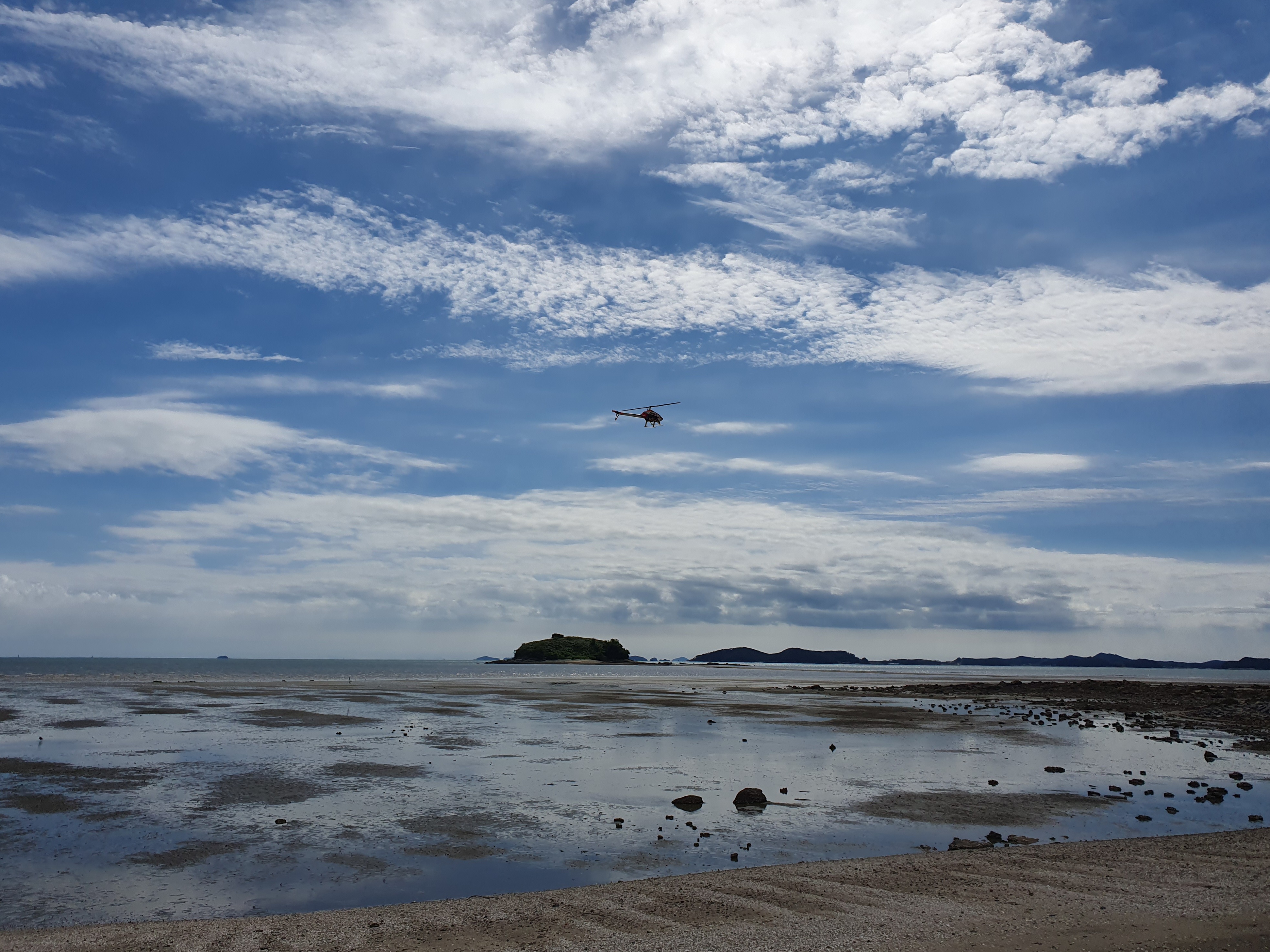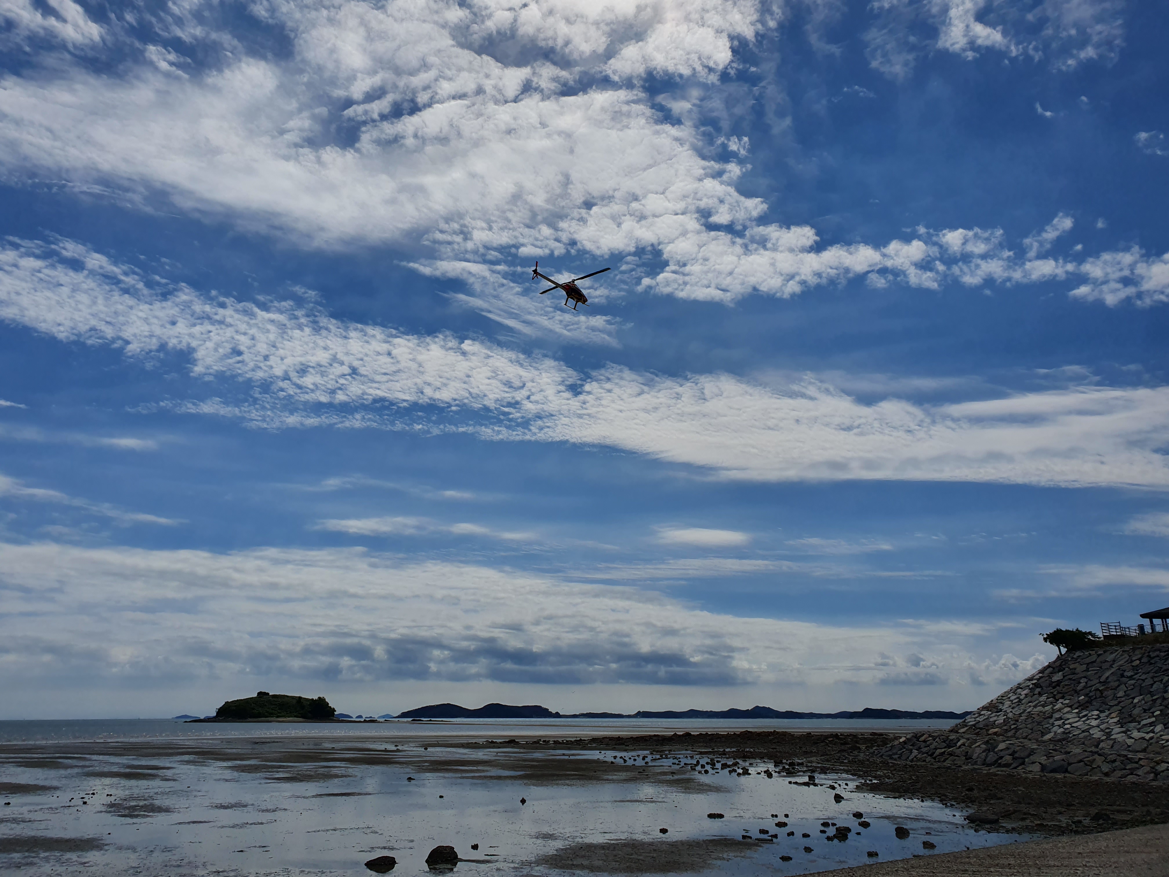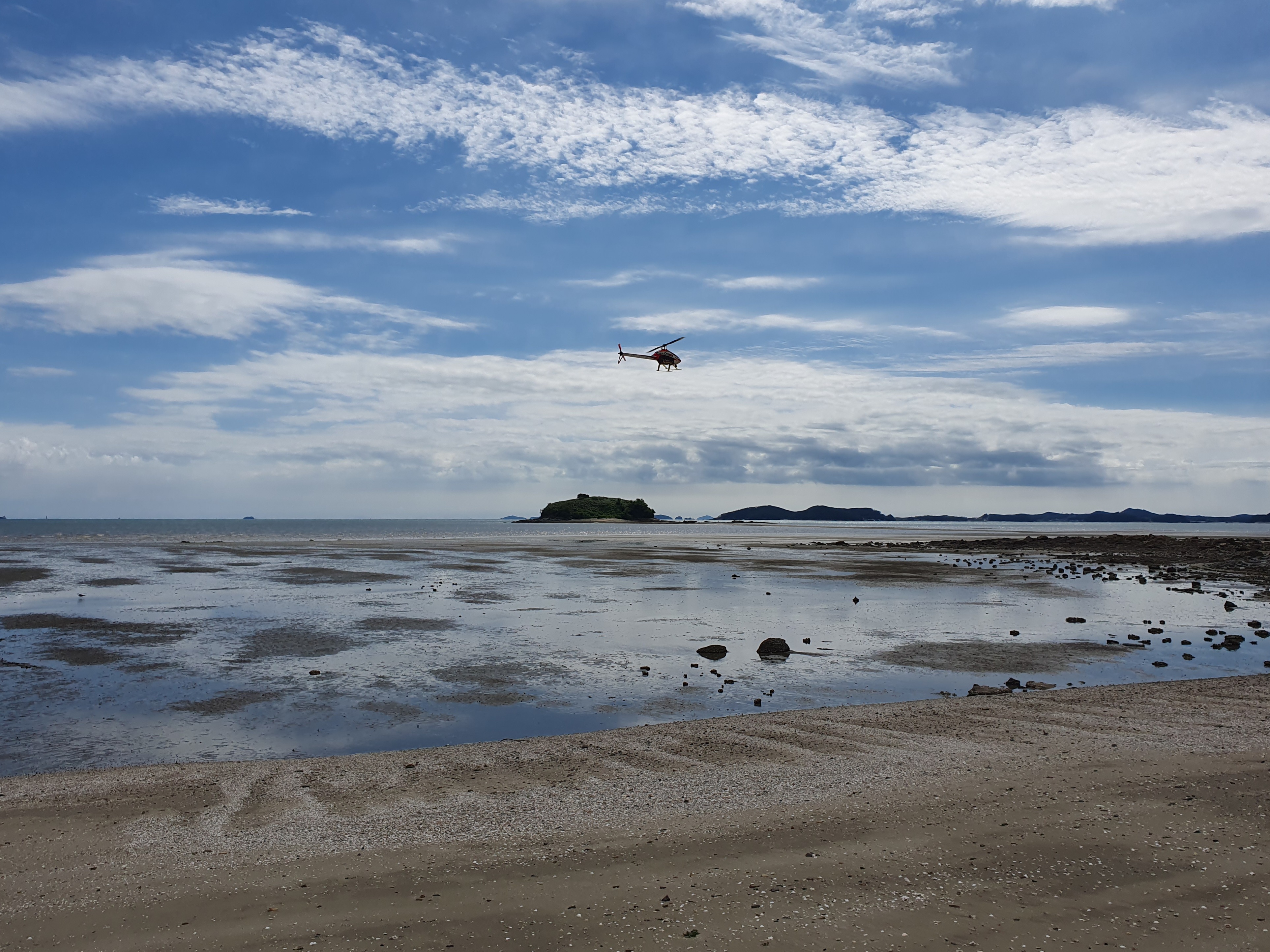 대천해수욕장을 마주보는 반대편 해안가에서 RC 헬기 비행