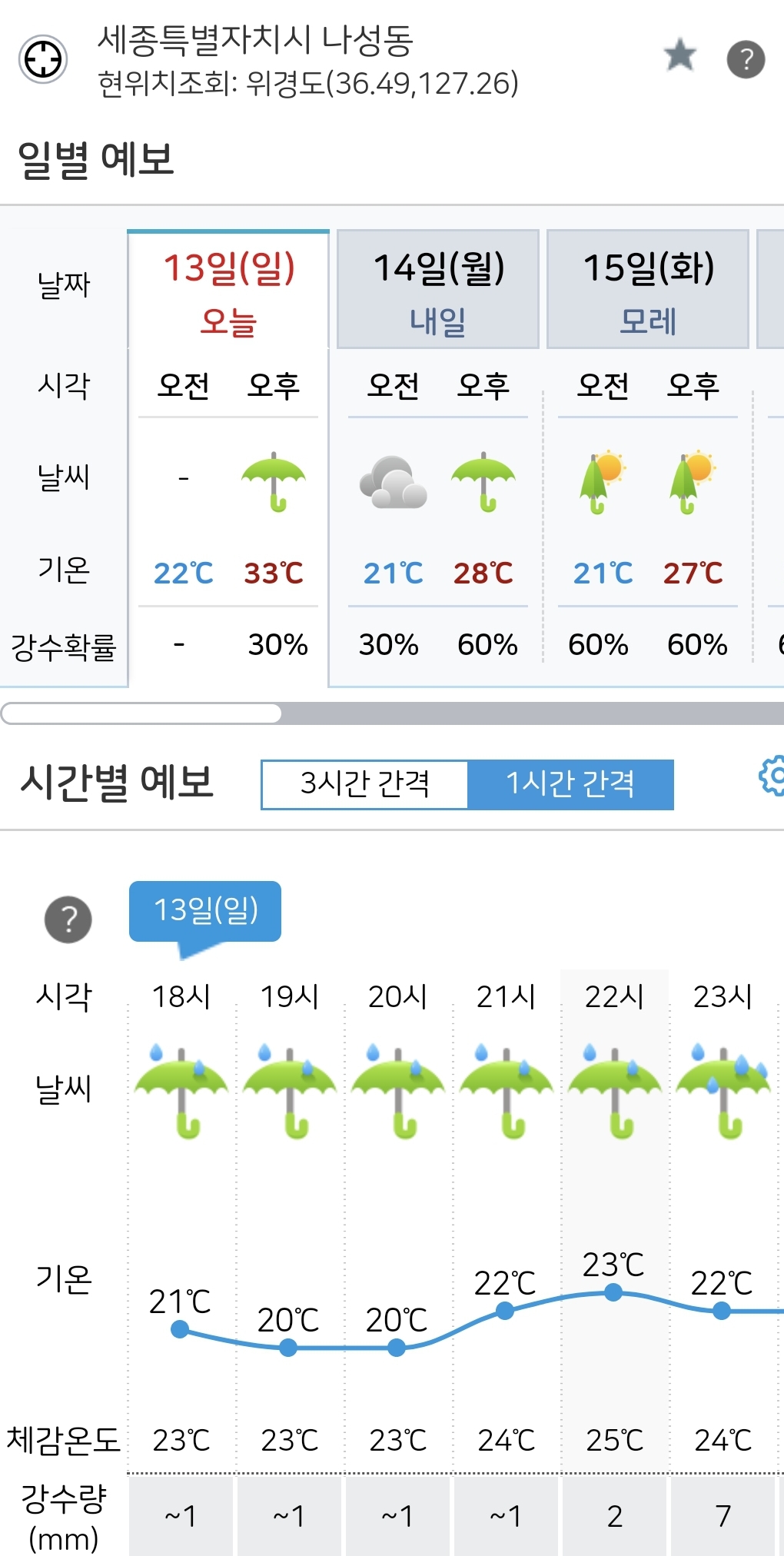 저녁시간에는 비가 내리네요 ^^