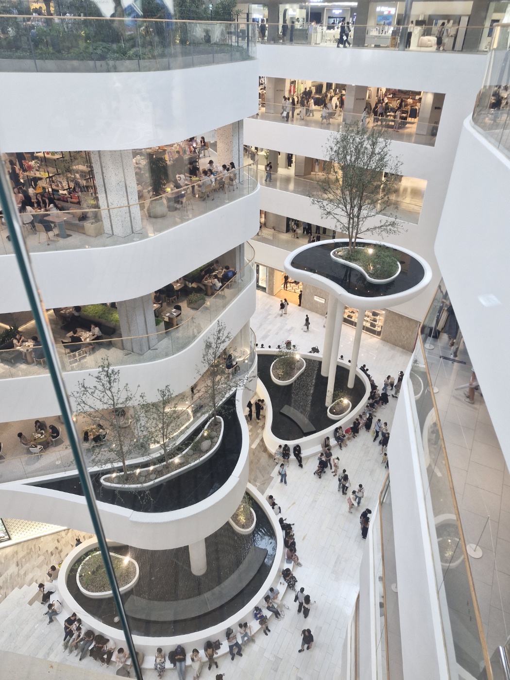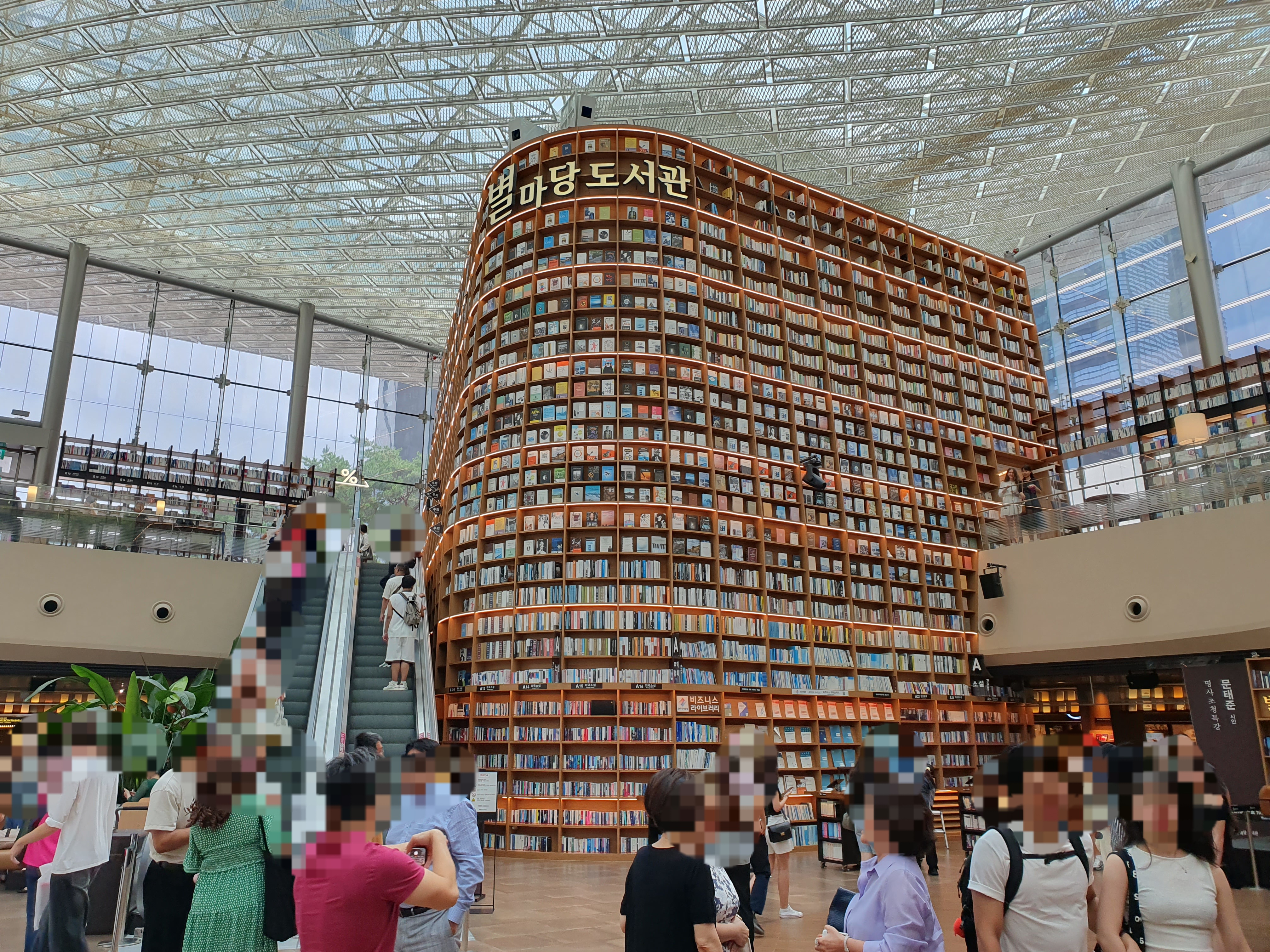 사람이 붐비는 공간을 지나서