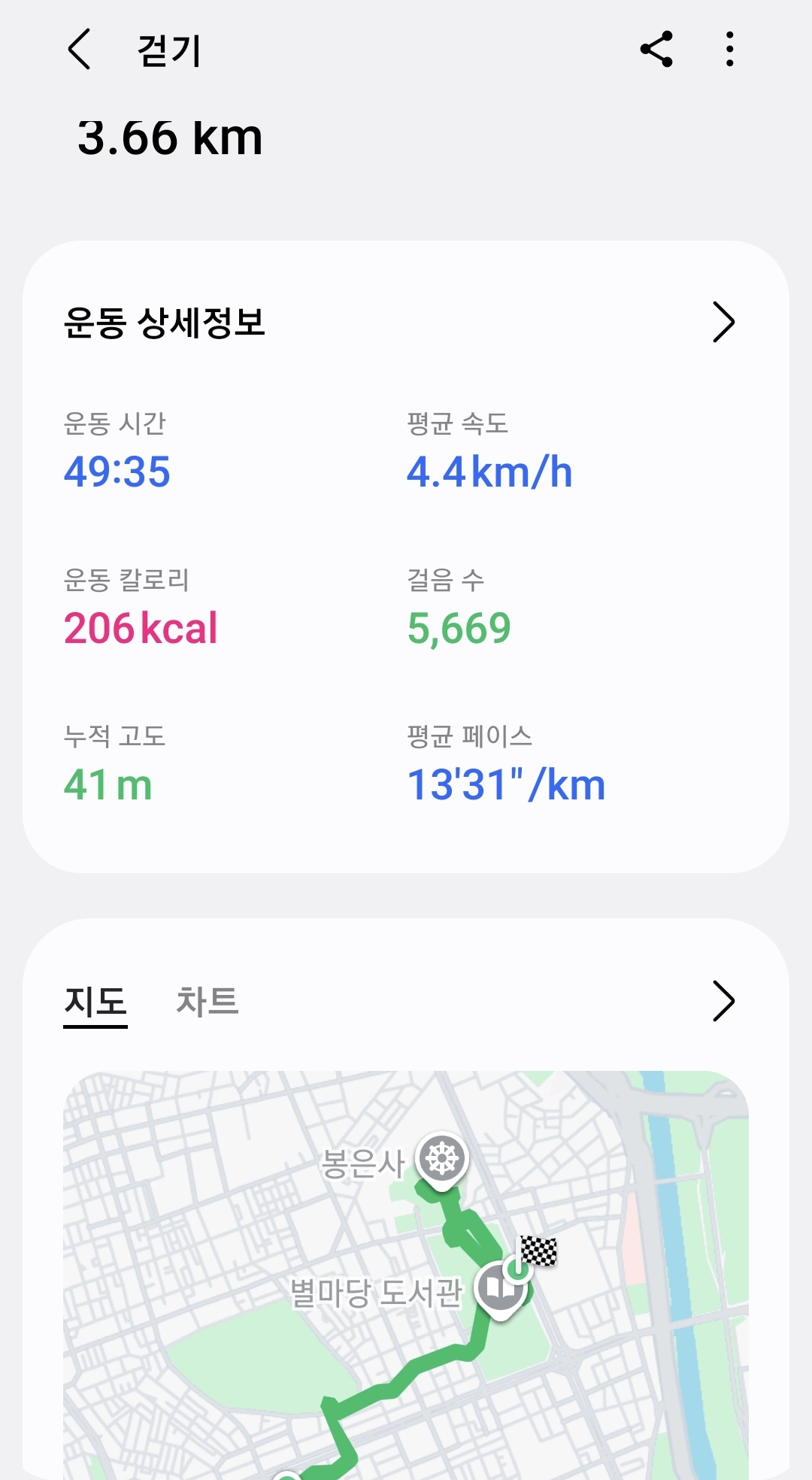 이정도 시간으로 이정도 거리를 산책할 수 있습니다.