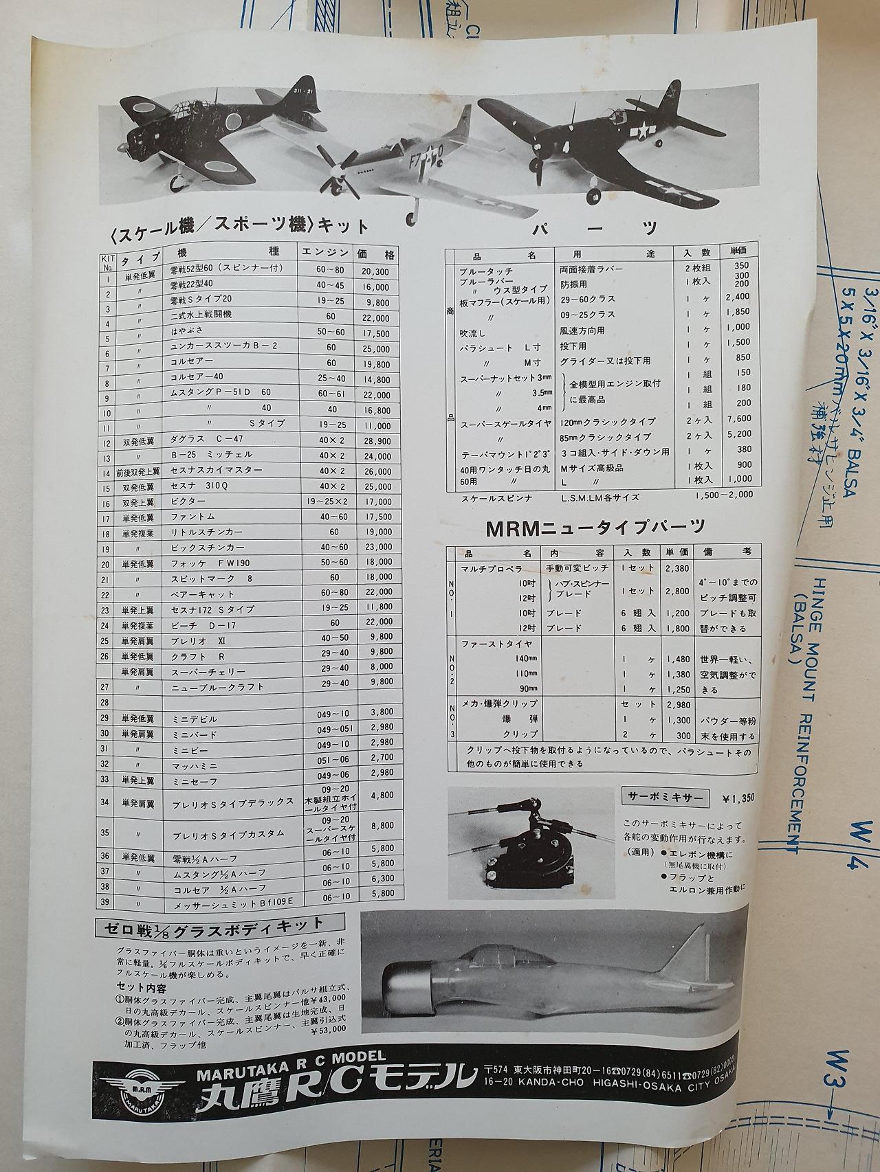1970년대 당시 marutaka 모델의 발사키트 제품 라인업을 확인할 수 있습니다.