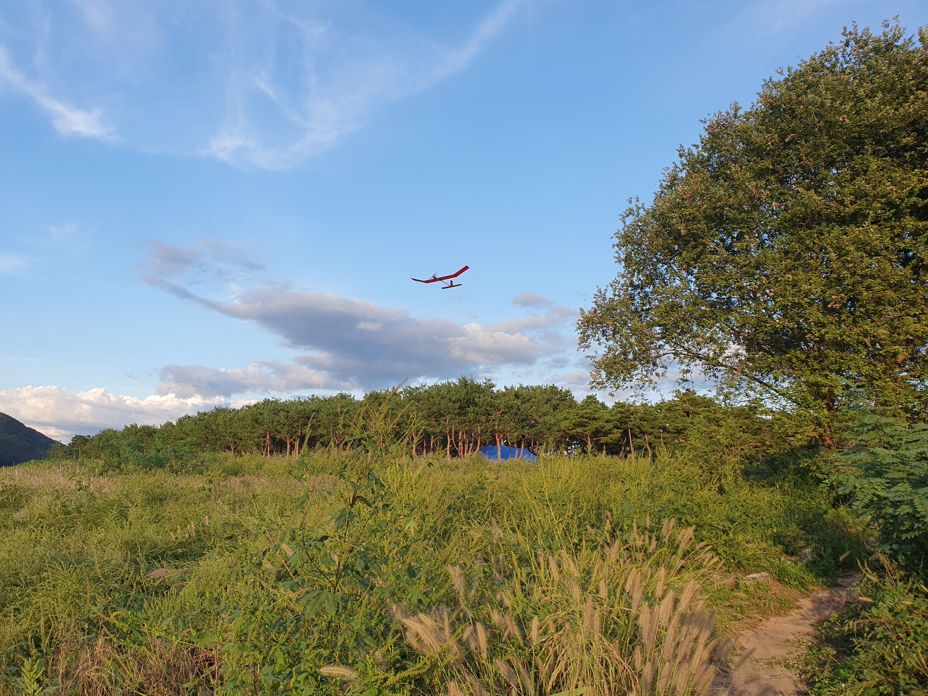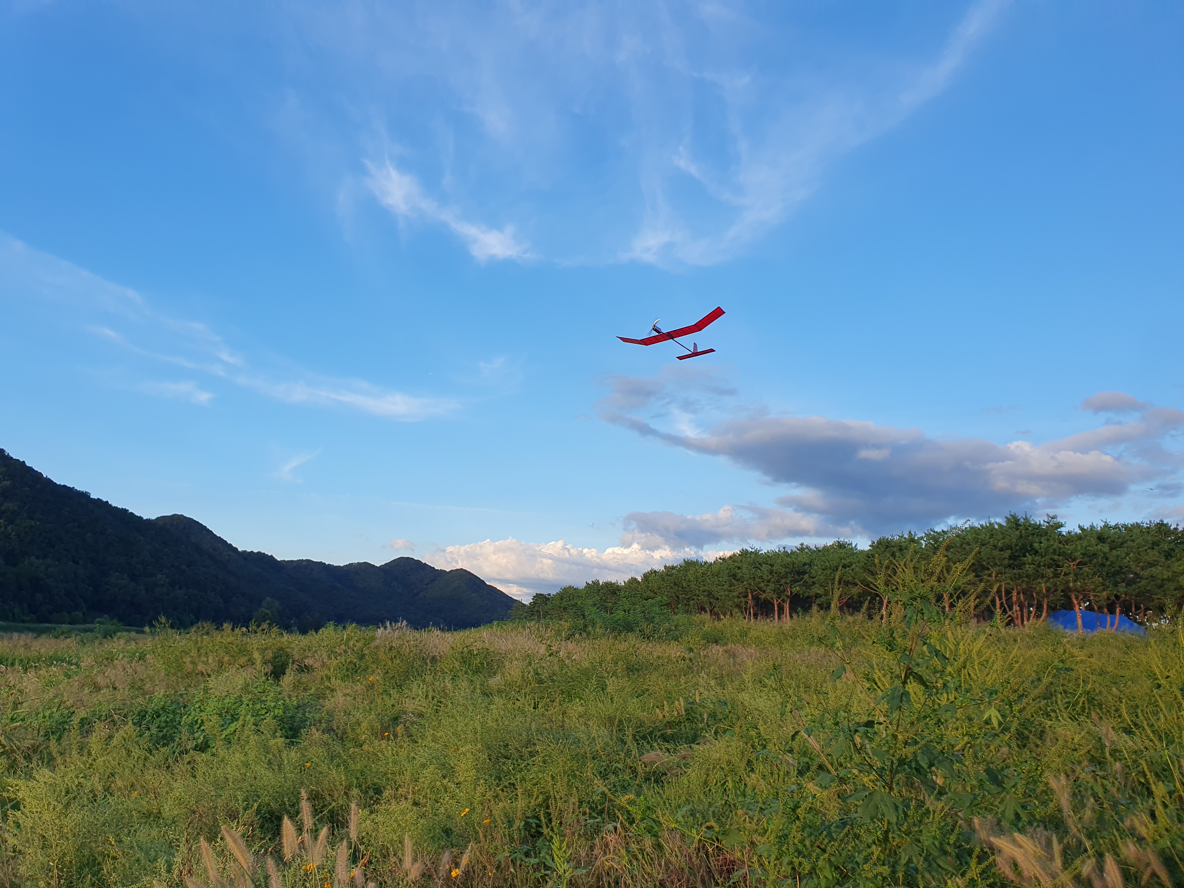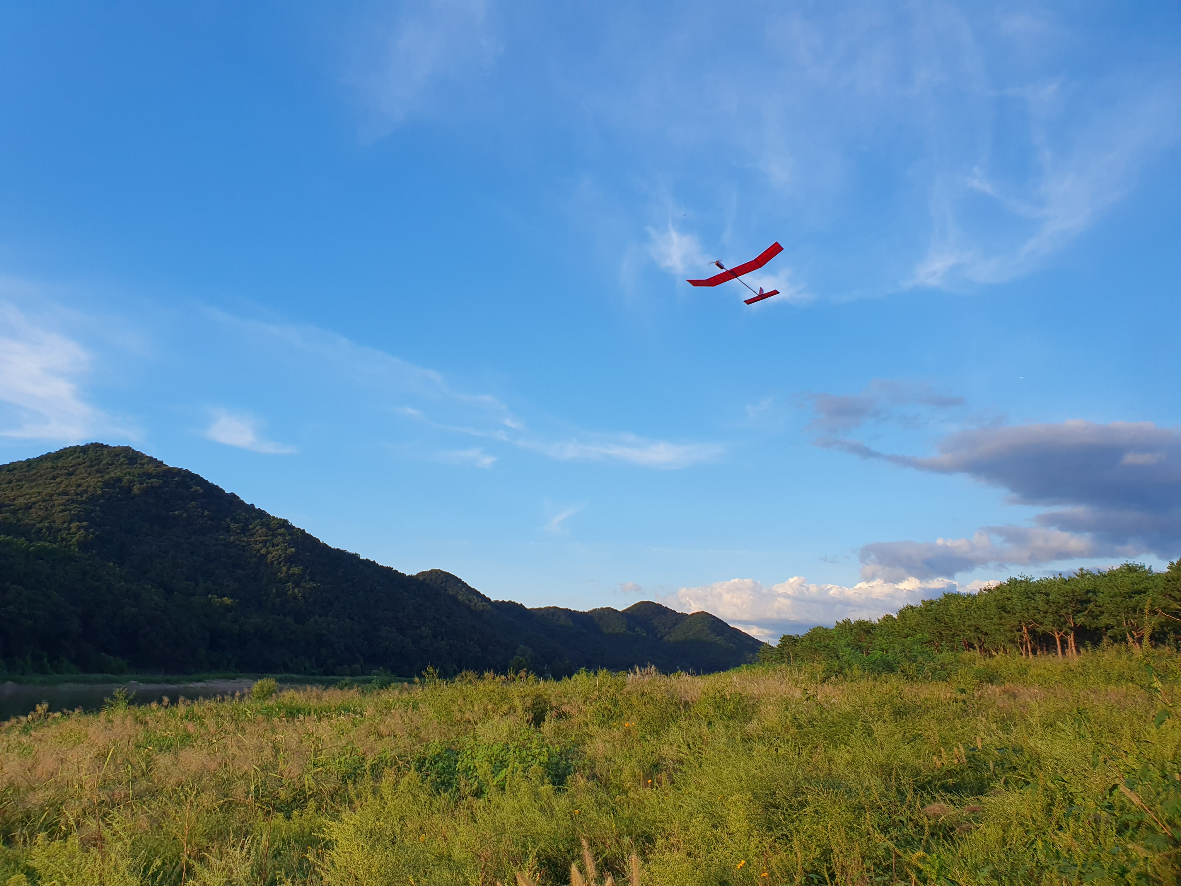저는 아슬아슬하게 나무를 피해가면서 RC비행을 즐겼습니다.