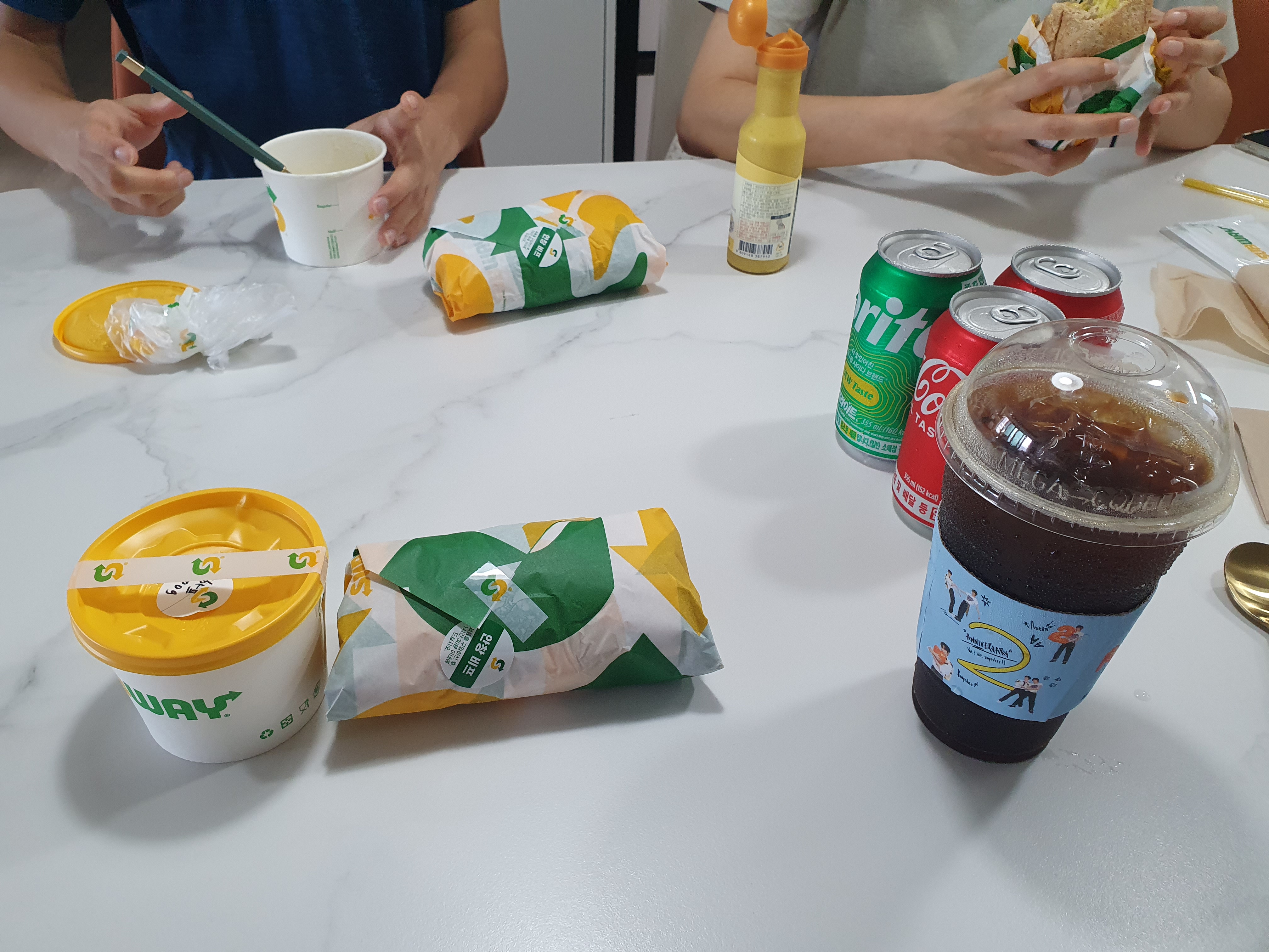 다시 일터에 도착해서 친구 a, 동생b와 함께 저녁식사