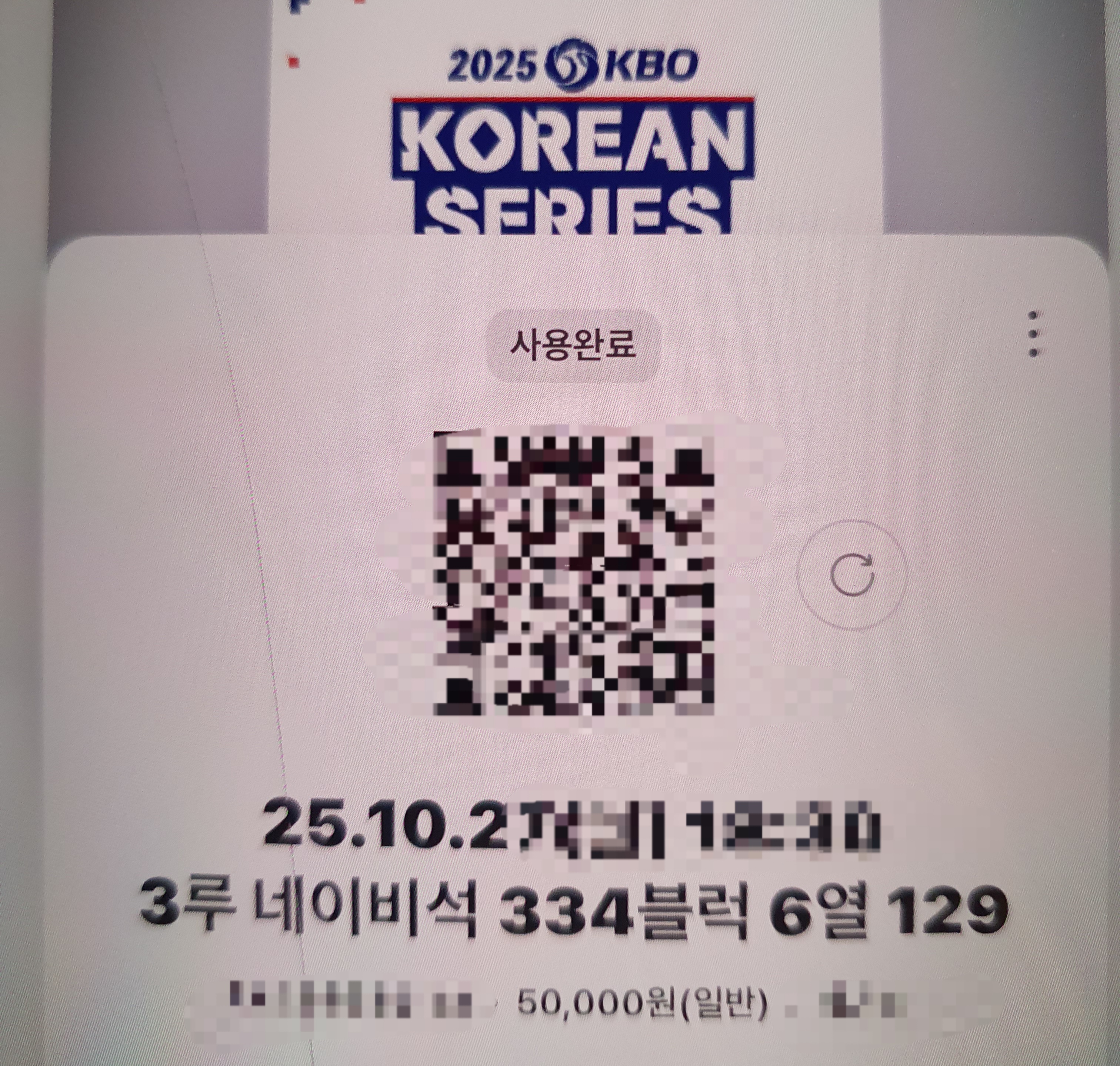 2025 한국시리즈 잠실 3루 네이비석 티켓가격 5만원 입니다.
