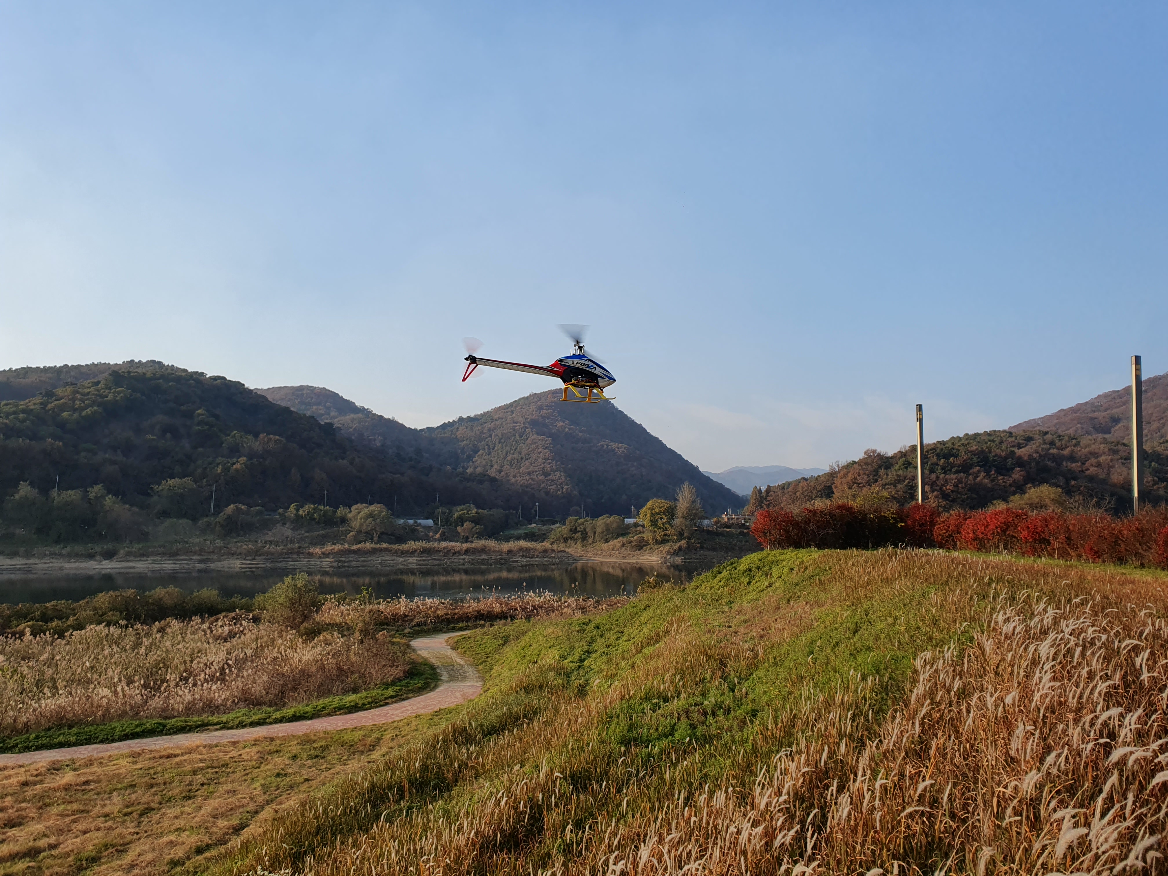 늦가을 분위기가 물씬 풍기는 배경으로 RC 비행을 즐겼습니다.