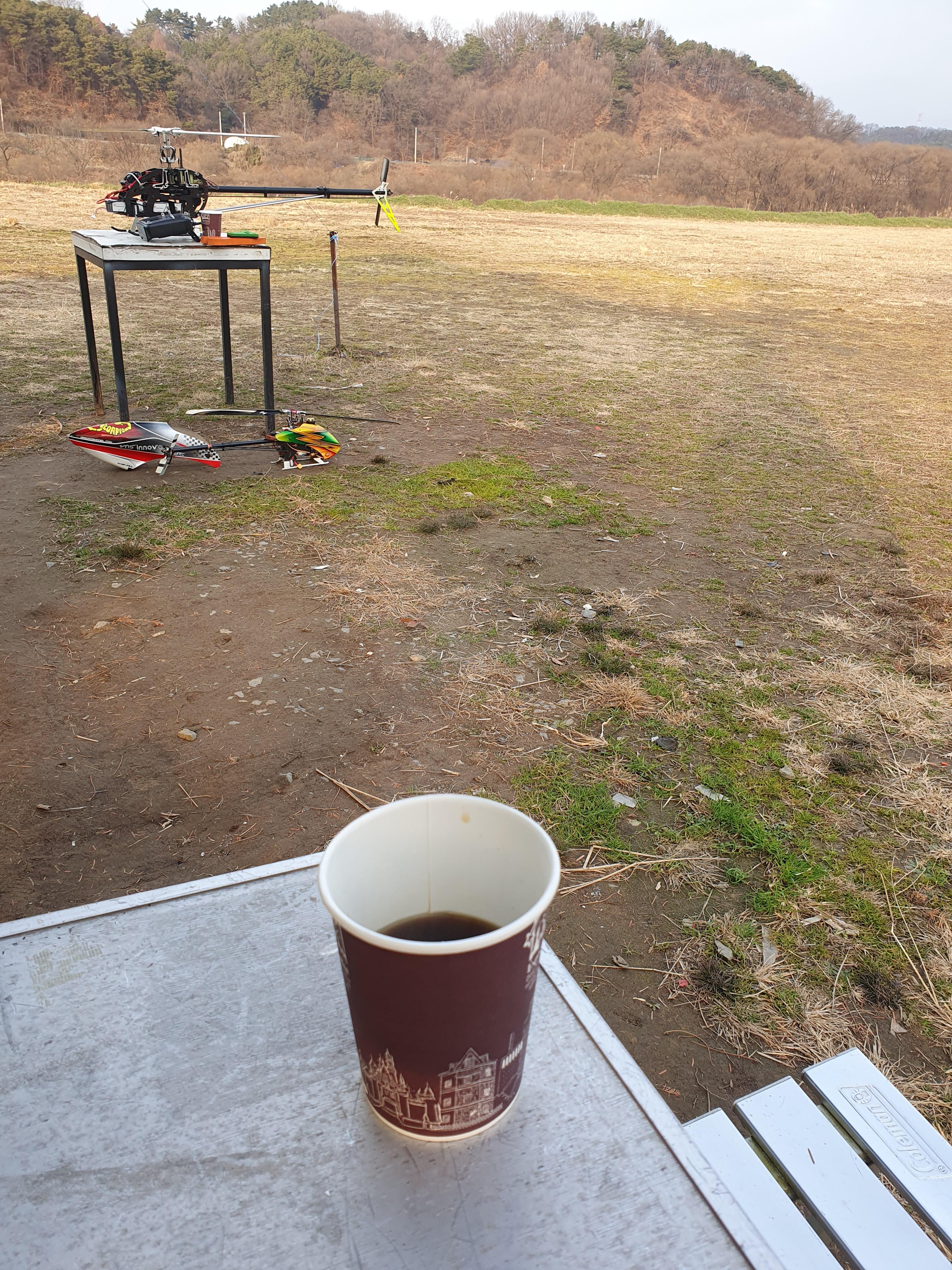 비행장에서 마시는 커피 한잔의 즐거움을 충분히 느끼고