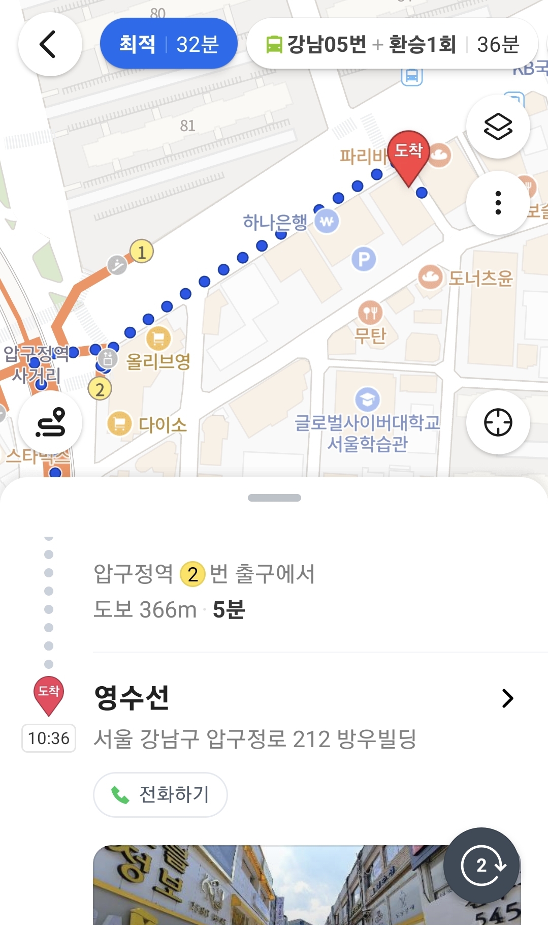 압구정역 도착