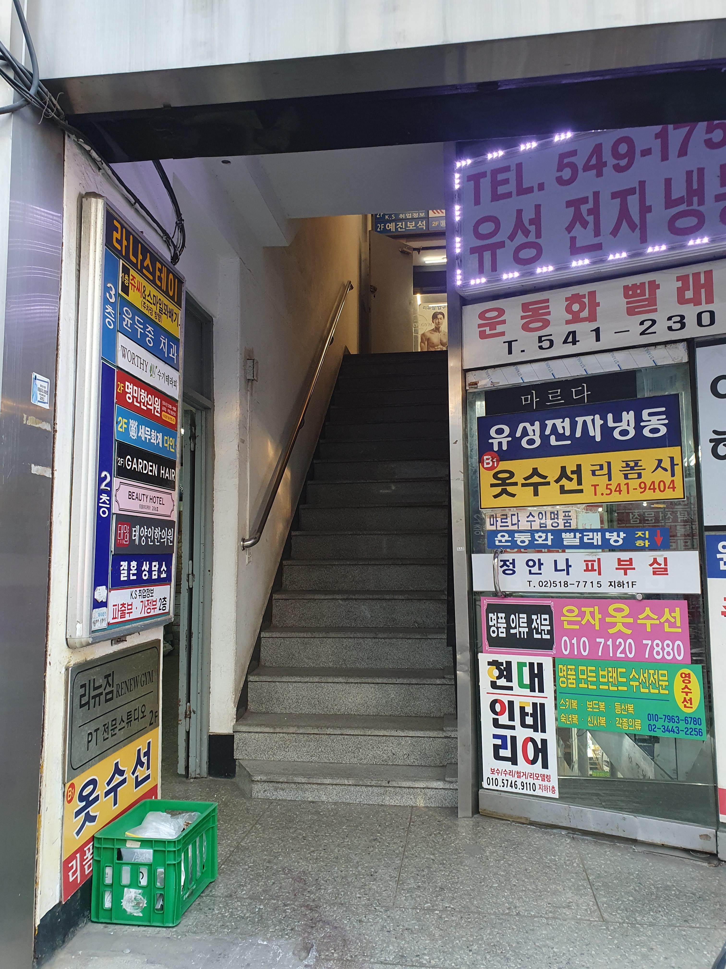 방우빌딩 입구 오른쪽 제일 하단에 '영수선'이 보입니다.