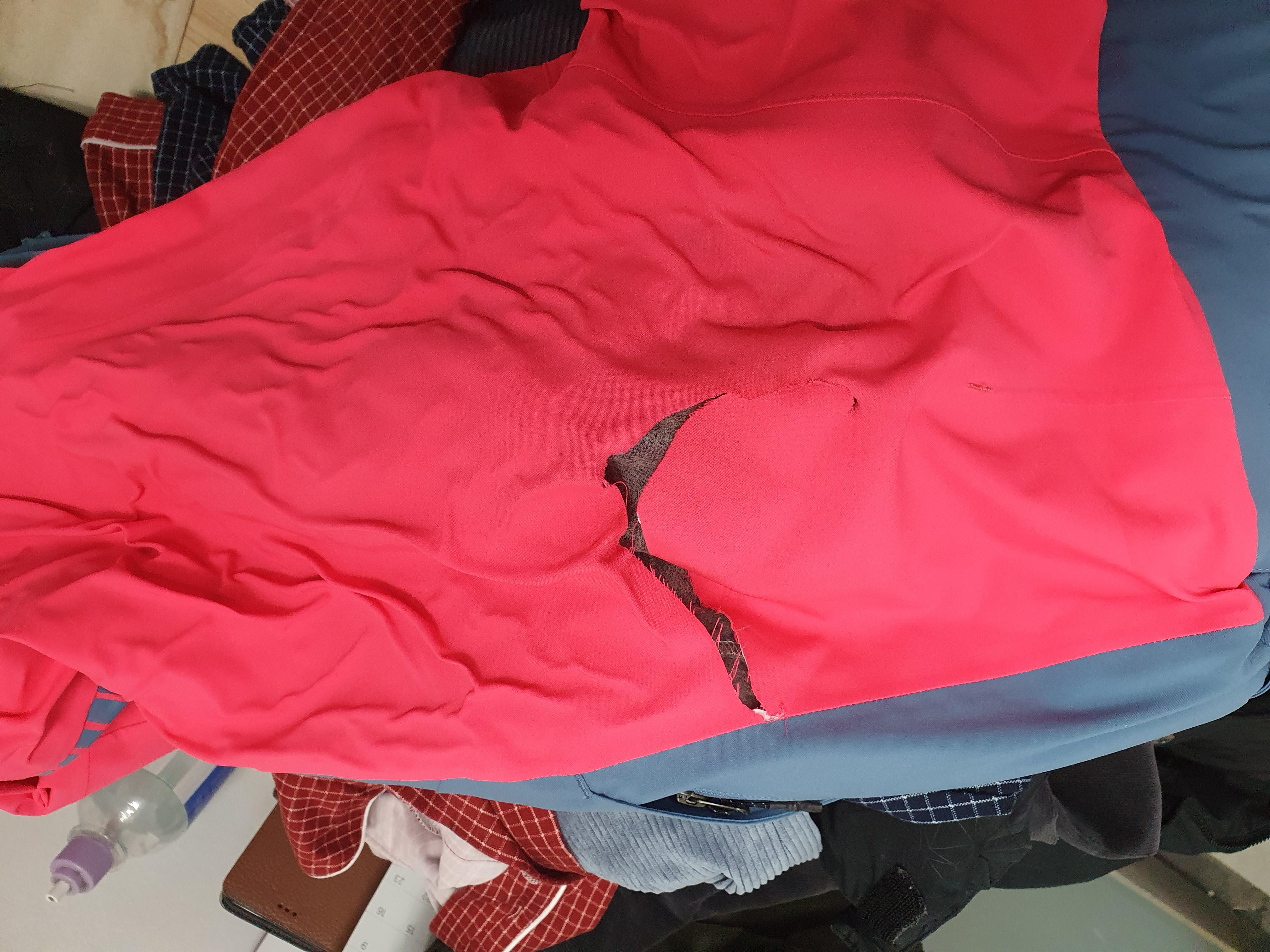 사장님께 찢어진 스키바지를 보여 드렸더니