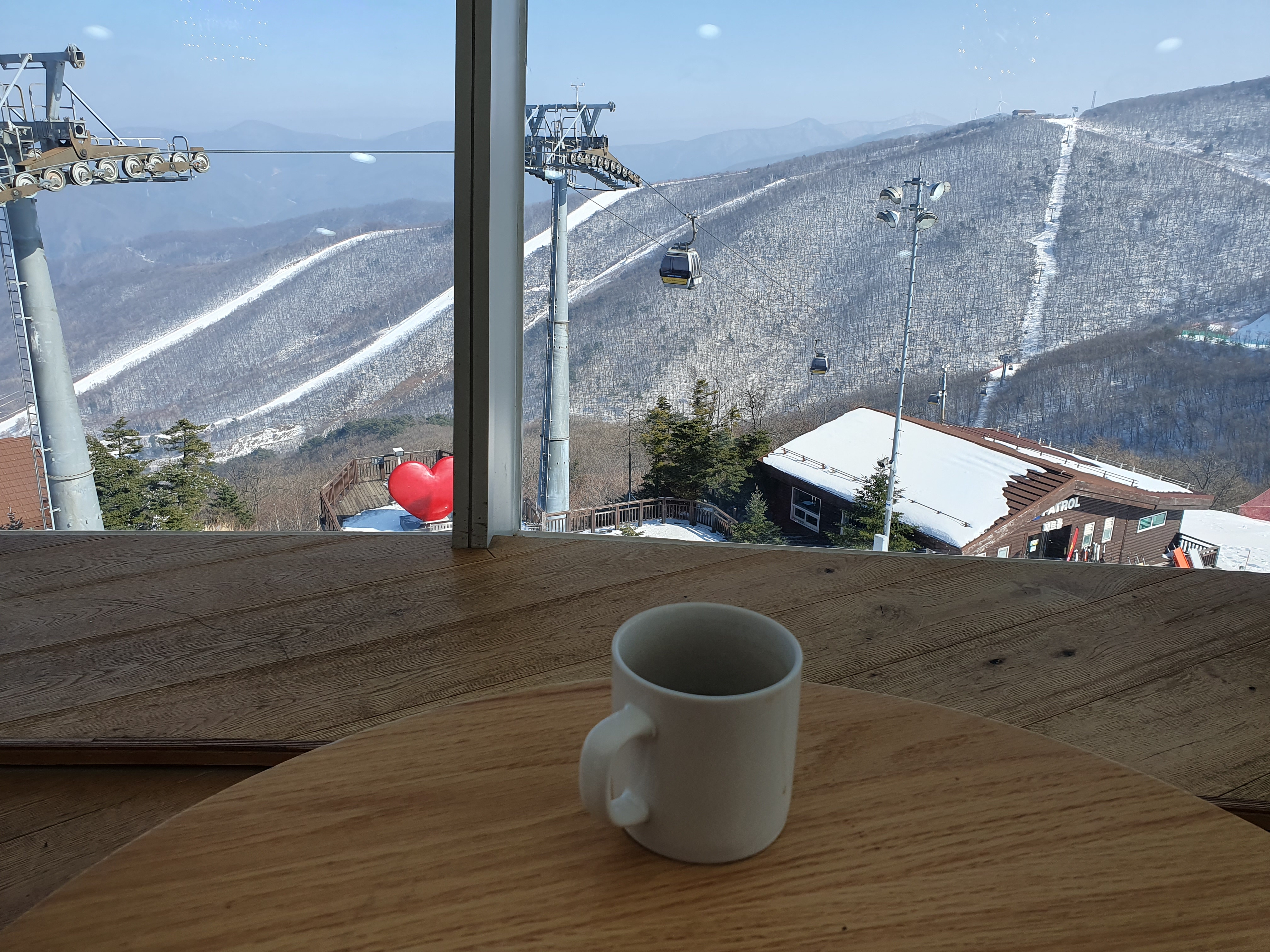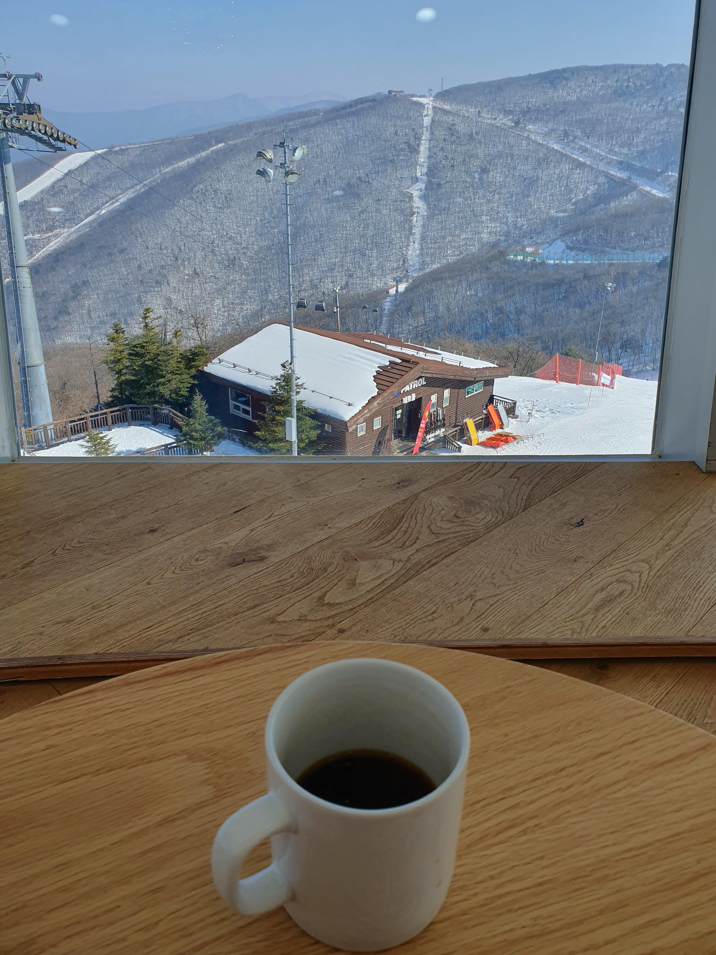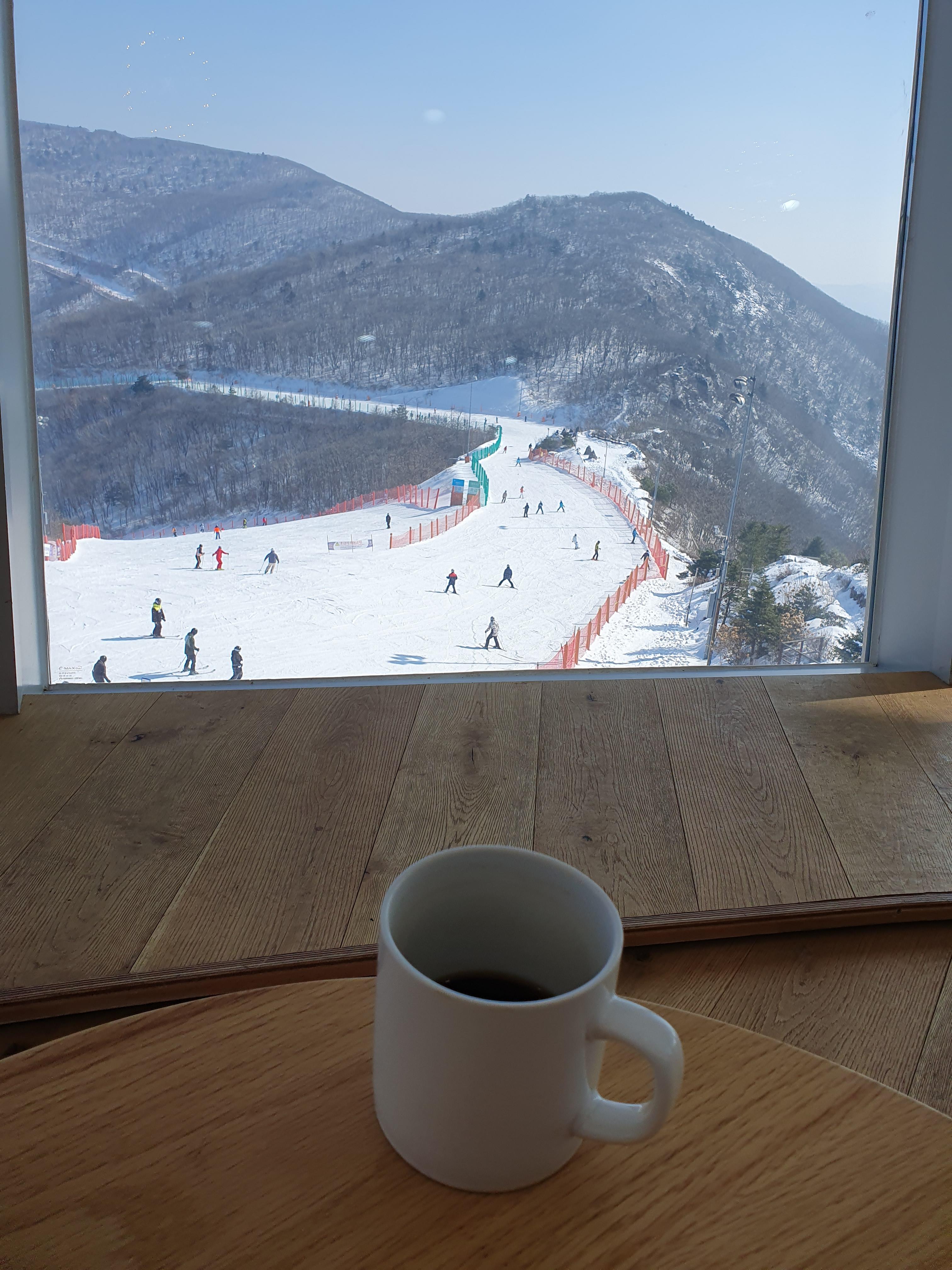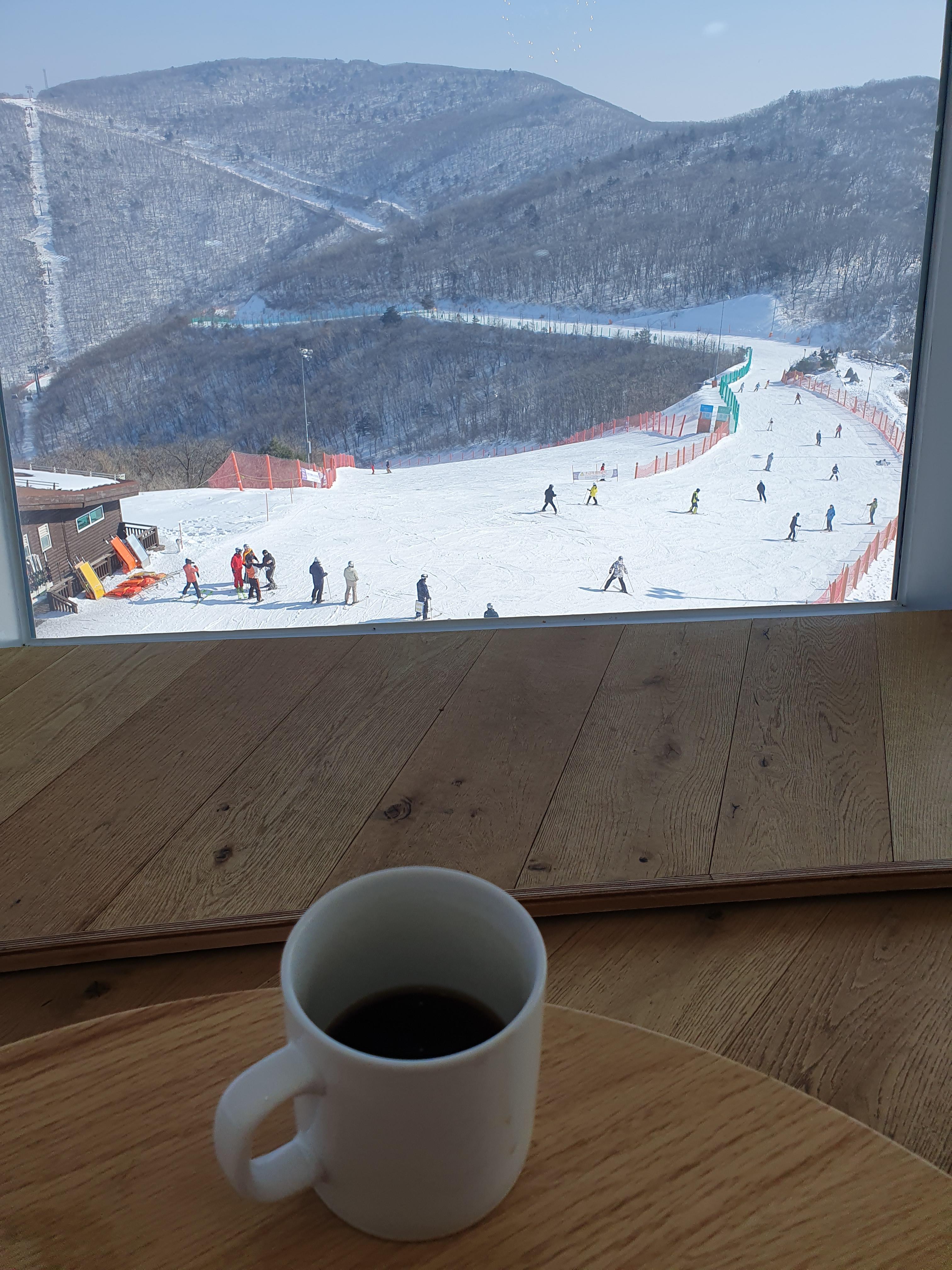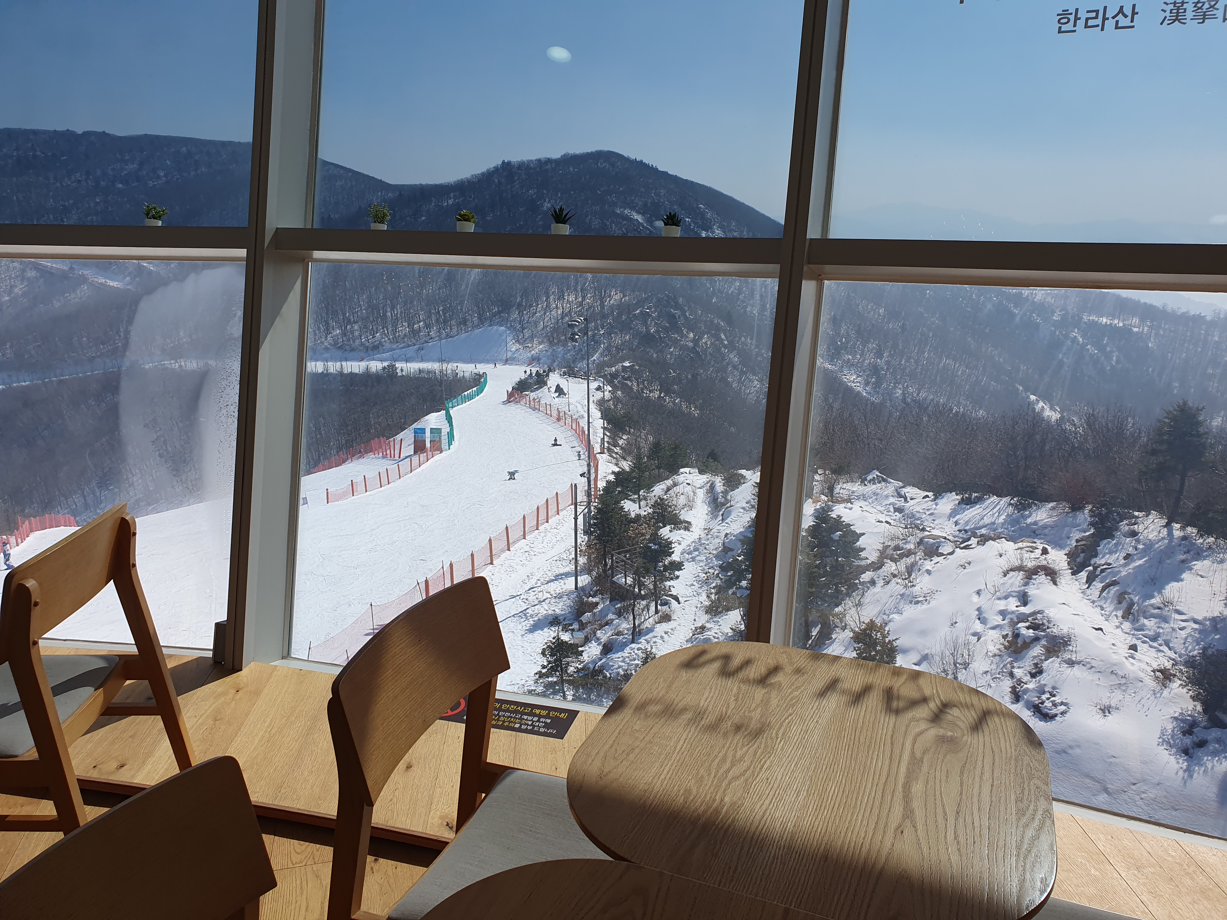 저는 한시간 정도 머물면서 스키장 뷰가 끝날때즈음에 나왔습니다.