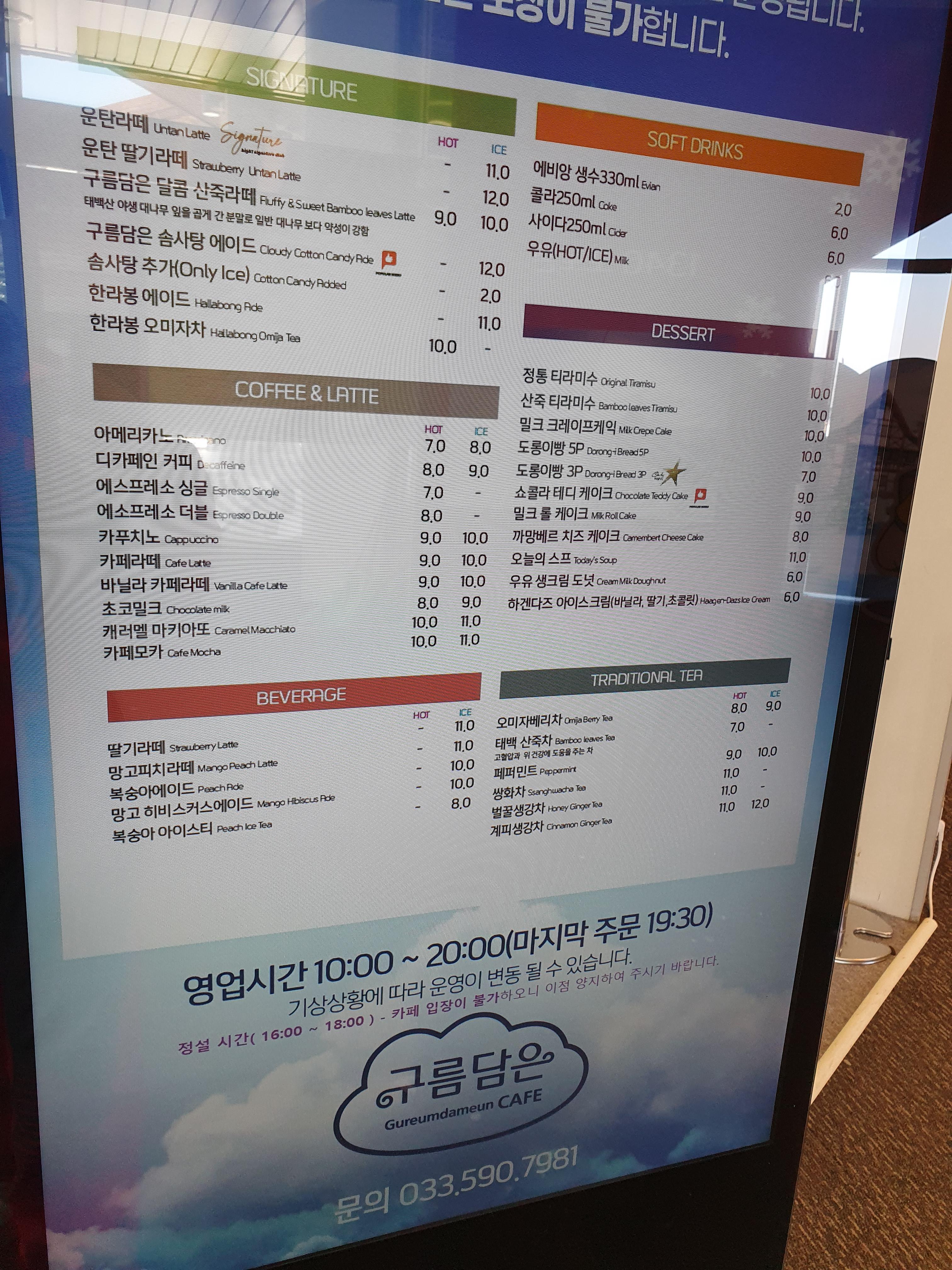 하이원 정상 타워 3층에는 고도 1,415m 카페 '구름담은 카페'가 있습니다.